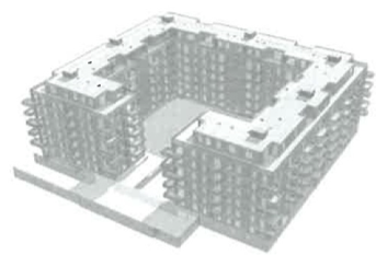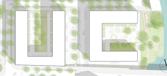 Wohngebäude, Kita, Bibliothek